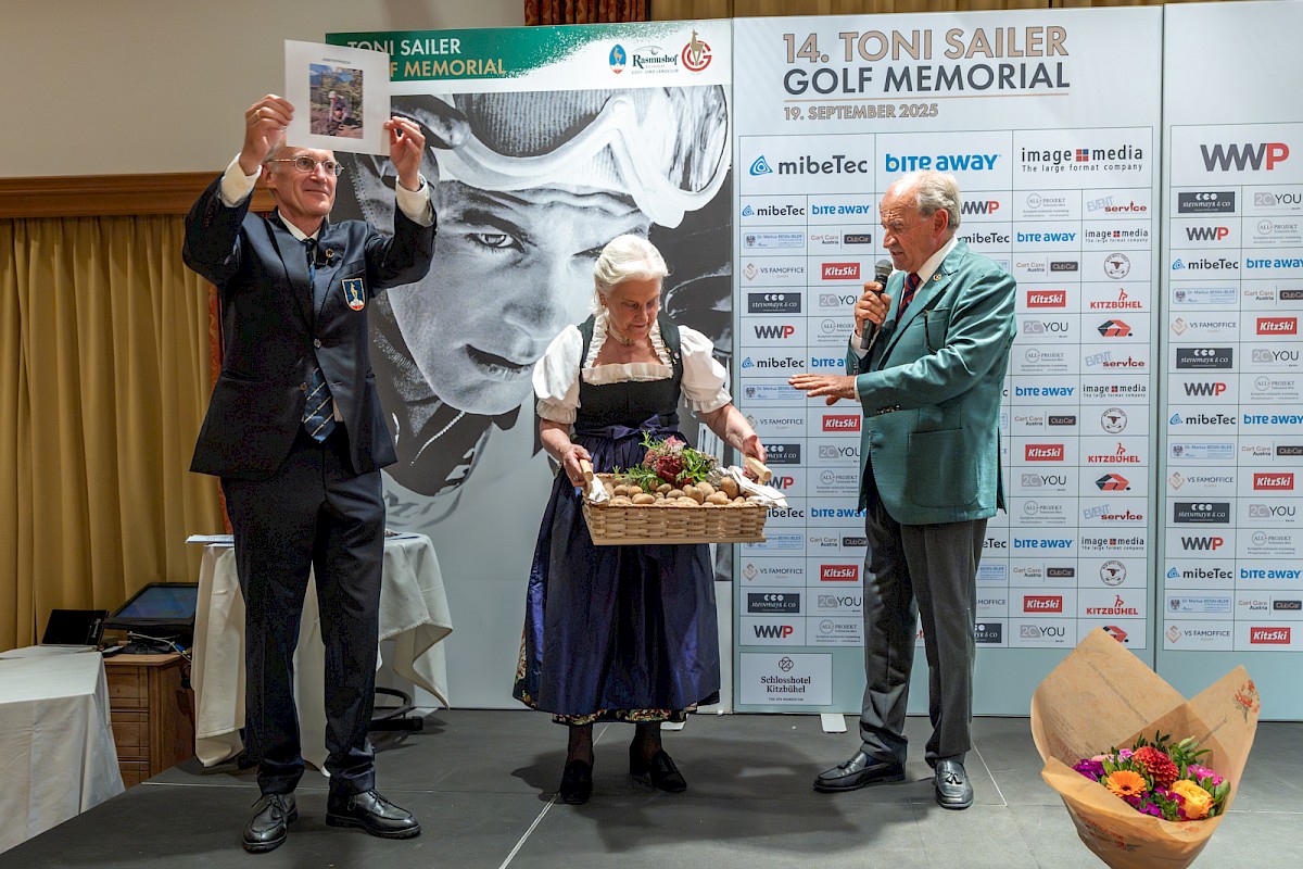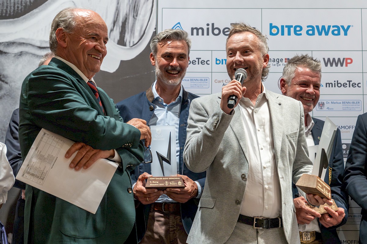 Viel Applaus gab es nicht nur für das Fazit, sondern auch für die spontanen Worte von Hansi Hinterseer. Der bis heute letzte Kitzbüheler Slalomsieger auf dem Ganslernhang gewann mit seinem Flight die Wertung Brutto B. Auf der Bühne erinnerte er sich mit herzlichen Worten an die vielen Jahre mit Toni Sailer, mit dem er schon als Bub vor der Kamera stand: „Was Toni in und für Kitzbühel bewegt hat, ist unglaublich und einmalig. Ich bin glücklich, ihn kennengelernt zu haben, und er war immer ein Vorbild. Schön, dass wir ihn alle auch dank dieses Turniers in Erinnerung behalten.“