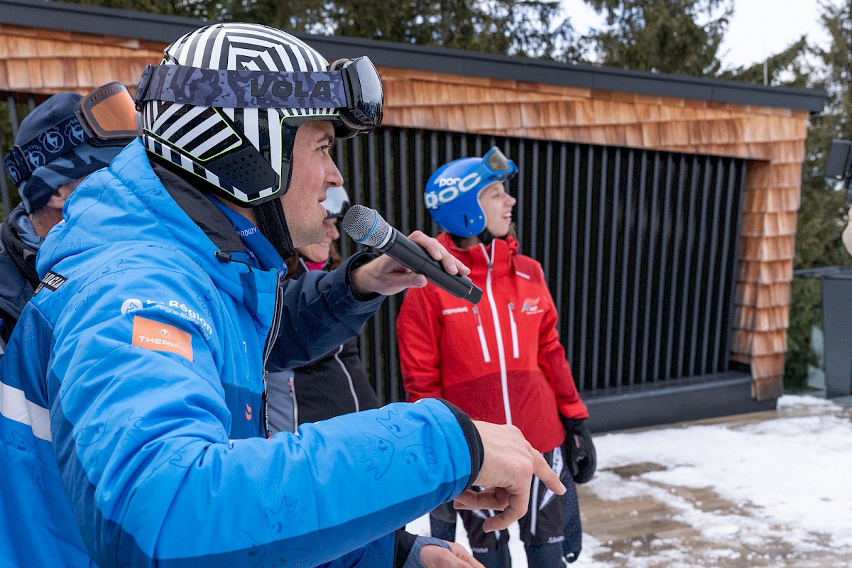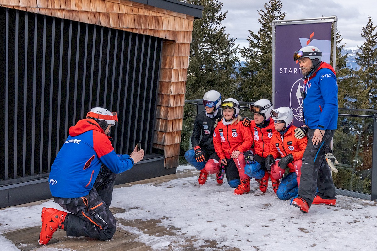 Anschließend gaben Michael Huber, Präsident des Kitzbüheler Ski Clubs, sowie Mario Mittermayer-Weinhandl, Trainer und Rennleiter der Hahnenkamm-Rennen, einen kurzen Einblick in die lange Geschichte der prestigeträchtigen Abfahrt auf der Streif. Wenig später durften die Wintersportlerinnen und Wintersportler die Rennstrecke hautnah erleben – bei einer gemeinsamen Abfahrt.