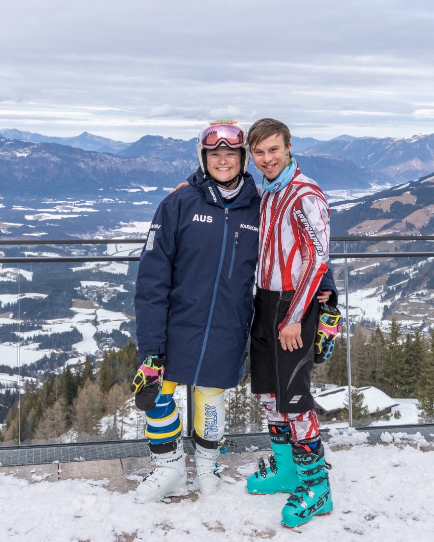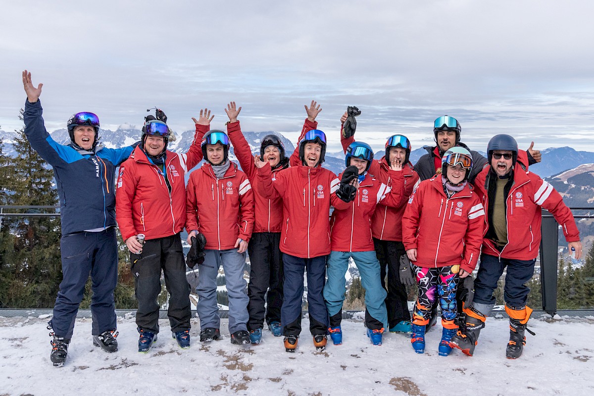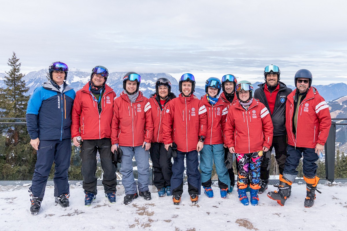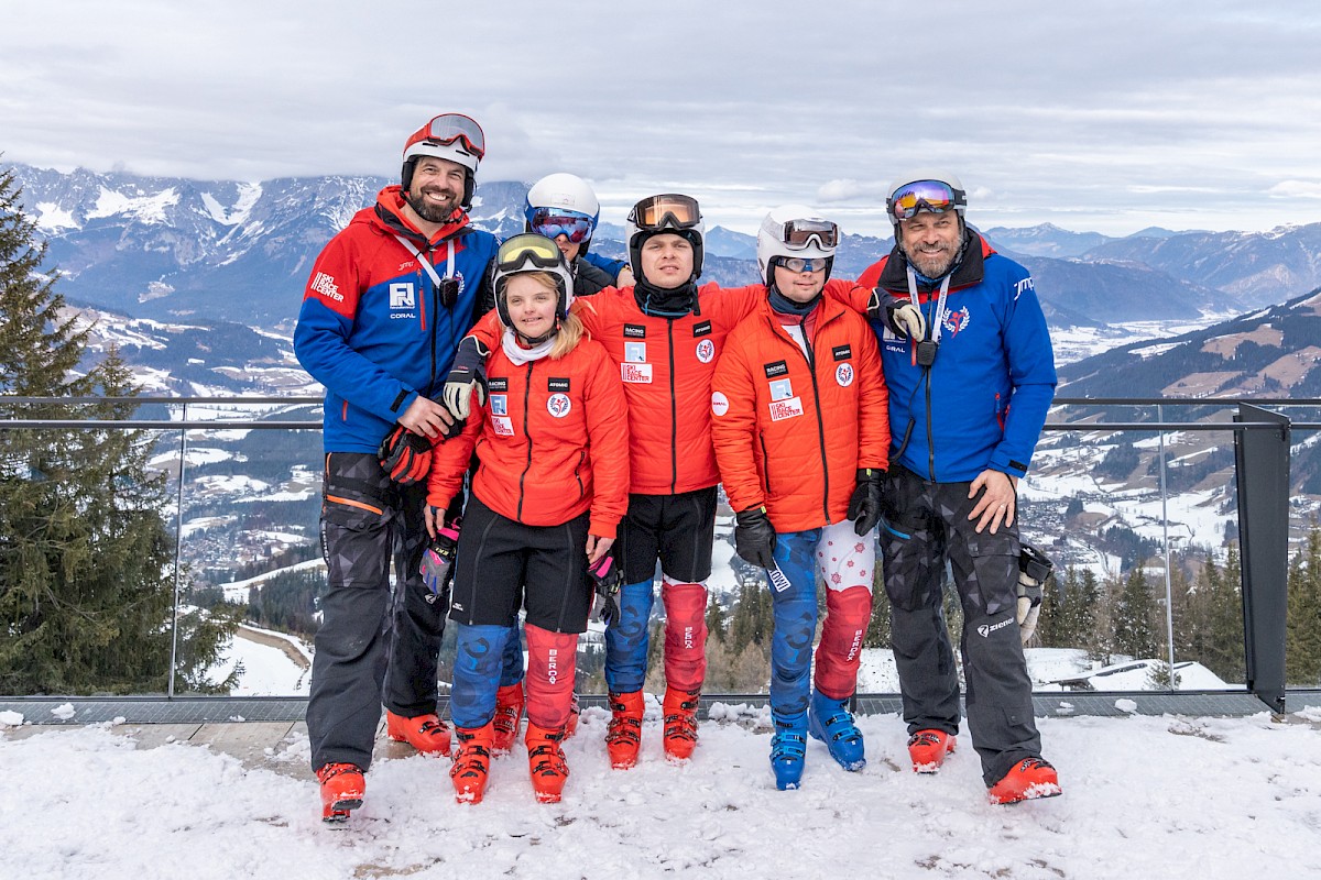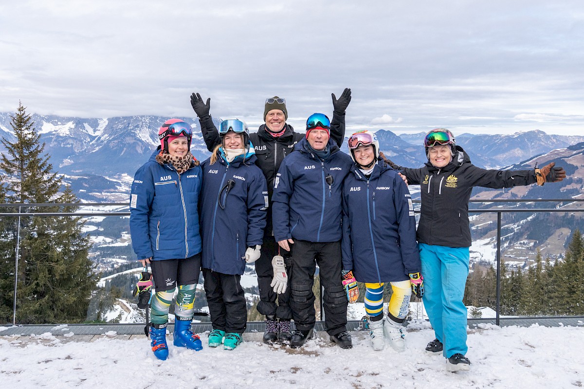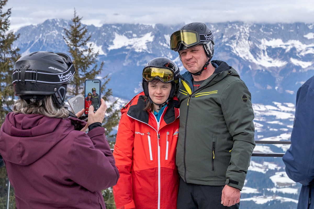 Für riesige Begeisterung sorgte die großzügige Terrasse direkt über dem Start, von der aus sich ein Blick vom Wilden Kaiser über das Kitzbüheler Horn bis hin zu den Südbergen eröffnet. Ein unvergessliches Panorama für die Virtus-Sportlerinnen und -Sportler aus acht Nationen, darunter Australien und die USA. Das malerische Plätzchen diente umgehend als Kulisse für Teamfotos, wobei vor allem das Shooting der italienischen Mannschaft für mitreißende Stimmung sorgte: Die gesamte Gruppe stimmte „Il Canto degli Italiani“, besser bekannt als „Fratelli d’Italia“, die italienische Nationalhymne, an.