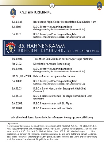 Medieninhaber Kitzbüheler Ski Club (K.S.C.), Hinterstadt 4, 6370 Kitzbühel, AUT, Tel.: + 43 5356 62301-0, E-